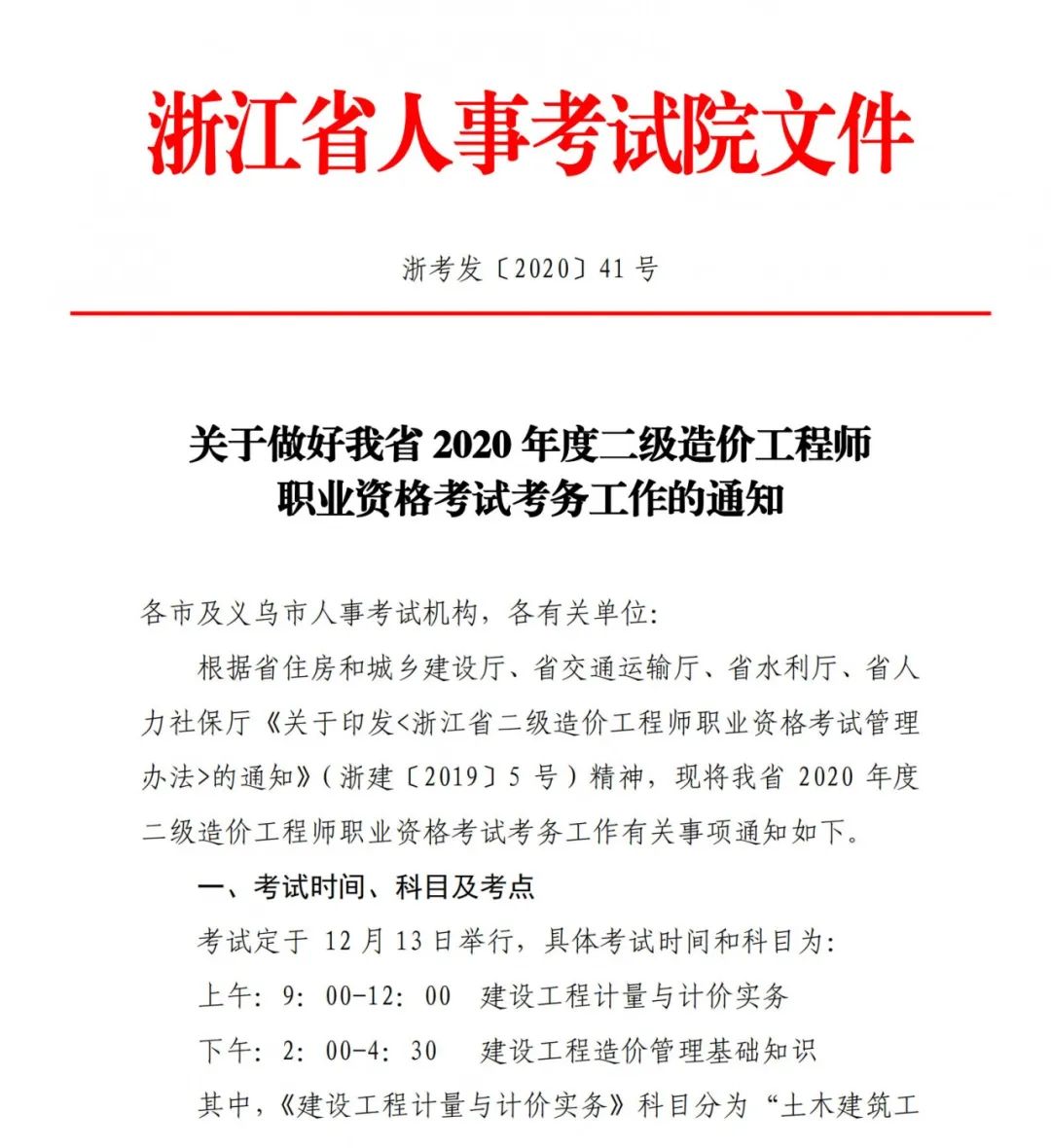 今年浙江省的二级造价师考试时间及内容已经公布!帮助大家提取了一些重要信息,快来看看吧!